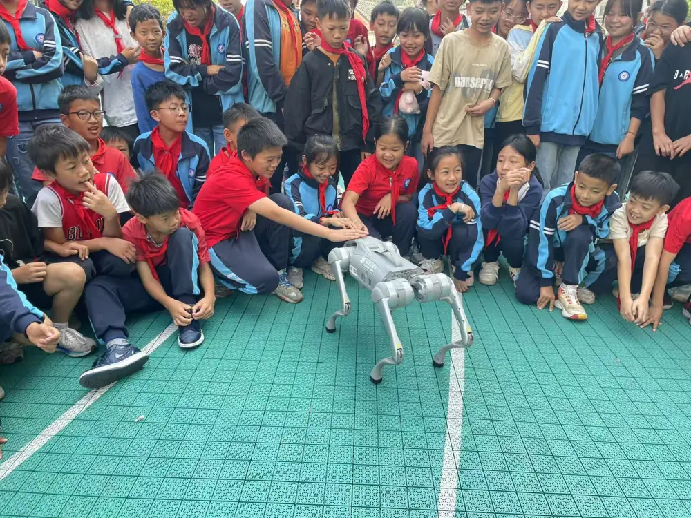 活动当天,科普大篷车满载着各类科普展品吸引了众多师生的目光。这些展品涵盖了光学、力学、电磁学、数学等多个学科领域,这些互动性强的展品让学生们在玩乐中学习科学知识,激发了他们对科学的浓厚兴趣。此外,机器人舞蹈和机器狗表演也成为了活动的亮点,灵活的机器人动作和可爱的机器狗形象,让孩子们感受到了科技的无限可能。互动环节中,孩子们积极参与,与志愿者们一起探讨科学问题,现场气氛热烈。