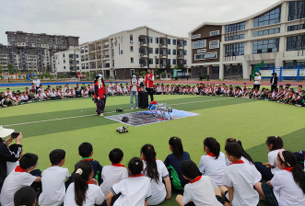 当科普大篷车驶入长平小学的操场,一场科技狂欢即刻拉开帷幕!科普志愿者化身 “科学魔法师”,在舞台上接连上演震撼的科技大秀:随着 “砰” 的一声巨响,自制的 “水火箭” 裹挟着水雾直冲云霄,引得全场爆发出此起彼伏的惊叹;晶莹的液氮倾倒在娇艳花朵上,花瓣瞬间凝结成易碎的 “冰晶”,孩子们踮起脚尖,目不转睛地盯着这神奇的瞬间;更有灵活的机器人随着音乐节奏跳起整齐划一的舞蹈,机械臂翻转间尽显科技魅力。
