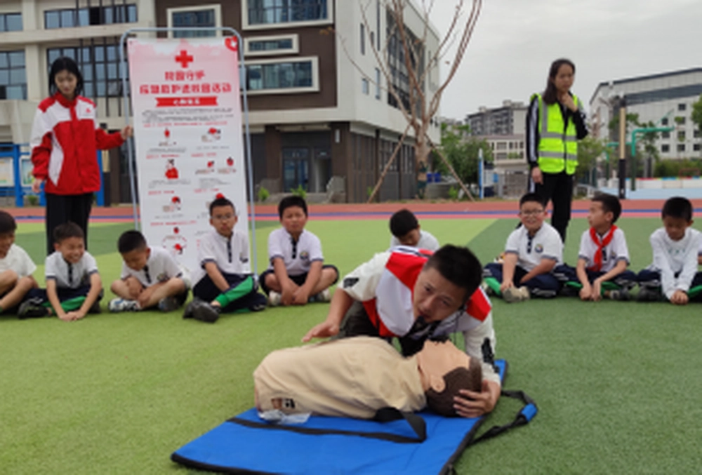 本次活动,仁寿县红十字会选派的急救培训老师们为孩子们展示了心肺复苏、海姆利克急救法和应急绳结等急救知识和技能,讲解开展应急救护培训,普及应急救护、防灾避险和卫生健康知识,并组织学生进行实际操作体验。