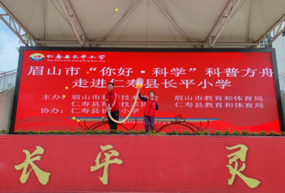 为积极贯彻落实“科教兴国”战略,弘扬科学精神,激发青少年的科学兴趣,丰富校园科技文化生活。2025年4月22日上午,由眉山市科协、眉山市教体局联合仁寿县科协、仁寿县教体局的眉山市"你好·科学"科普方舟活动走进仁寿县长平小学。为全校1600余名孩子送上了一场集科学性、趣味性、参与性为一体的科普盛宴!