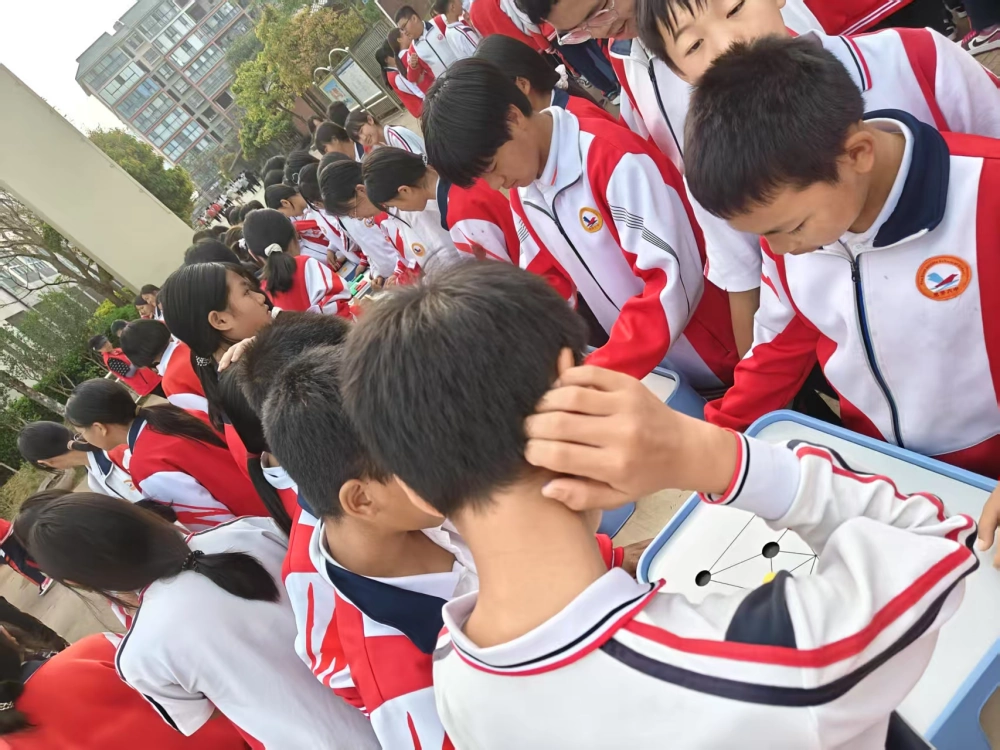 活动现场,8名科普志愿者们通过展示数学、力学、机械等领域的20余件互动展品,搭配15套“保尔・加力正方形”、“六星数字谜题”等实践活动资源包,让科技魅力可触可感。会唱歌跳舞的机器狗表演更是瞬间点燃全场,精准的动作编程与灵动的互动设计深深吸引了围观师生,将现场气氛推向高潮,赢得了在场1207名师生的阵阵惊叹。一位八年级学生兴奋地说:“原来物理原理可以这么有趣,我想自己动手做个简易机器人!”