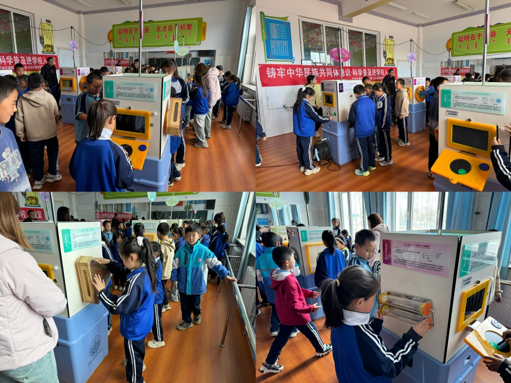 4 月 22 日上午,巴林左旗科技馆、老科学技术工作者协会与校外科技类培训机构的志愿者组成志愿服务队,驾驶科普大篷车驶入乌兰达坝小学,开展 “铸牢中华民族共同体意识、科学普及进学校入教室” 活动,为学生们打开探索科学世界的大门。