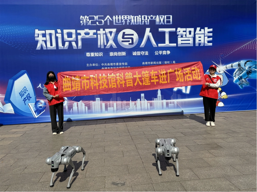 为迎接第25个“世界知识产权日”,进一步普及科学知识,增强公众知识产权保护意识,4月26日,曲靖市科技馆“科普大篷车”走进珠江源广场,开展了一场别开生面的科普宣传活动。活动以“知识产权与人工智能”为主题,通过互动体验、展板展示和现场讲解等形式,向市民传递科技创新与知识产权保护的重要性。
