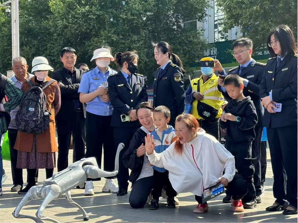 上午9时,珠江源广场人头攒动,曲靖市科技馆的科普大篷车吸引了众多市民驻足。活动现场科普辅导员通过机器狗表演互动、分发反邪教知识读本、知识产权宣传资料等,让市民尤其是青少年近距离感受科技创新的魅力。