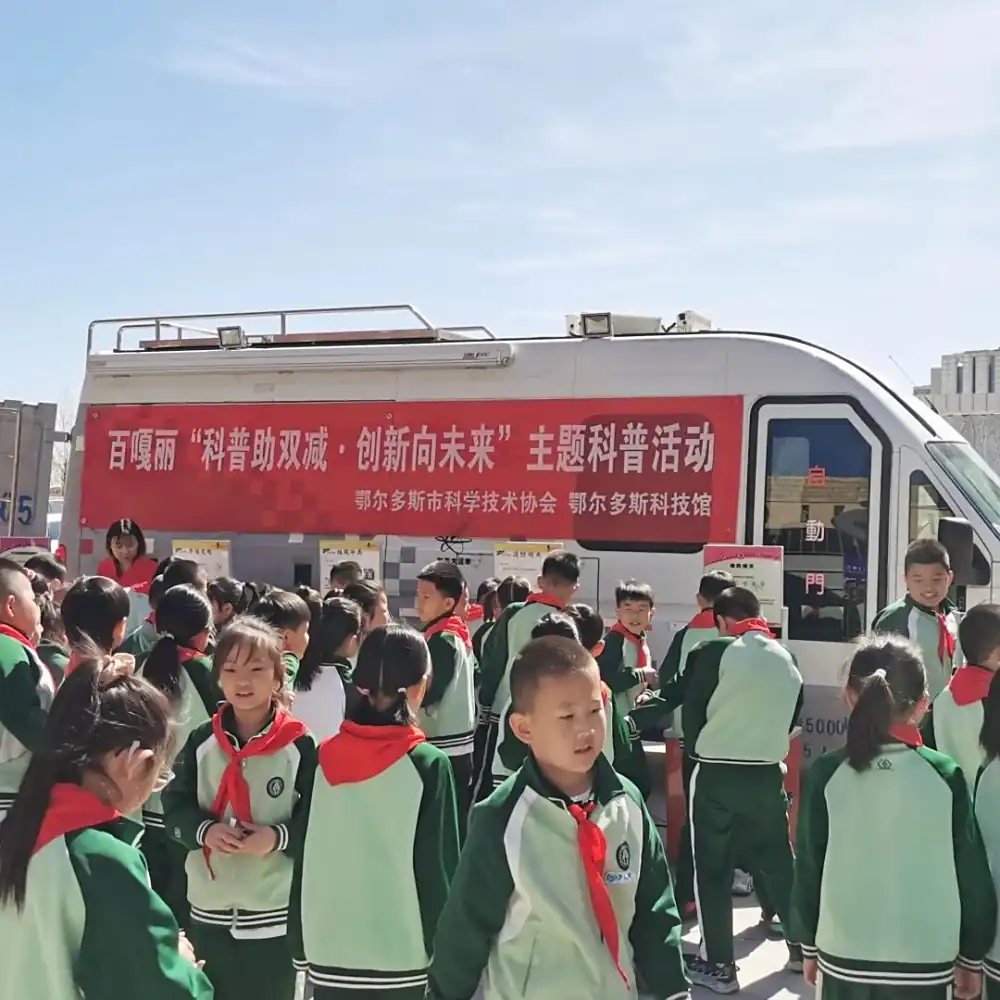 人间四月,芳菲浸染。在这春意盎然的季节,一场别开生面的科学盛宴启幕。为深入贯彻《鄂尔多斯市全民科学素质行动规划纲要实施方案(2021—2025年)》,深化校内外科学教育衔接,推进“双减”政策与科学教育深度融合,4月22日上午,鄂尔多斯市科协、市科技馆科普大篷车满载科学展品,走进北京师范大学鄂尔多斯第二附属学校,开展以百嘎丽“科普助双减·创新向未来”为主题的科普活动。
