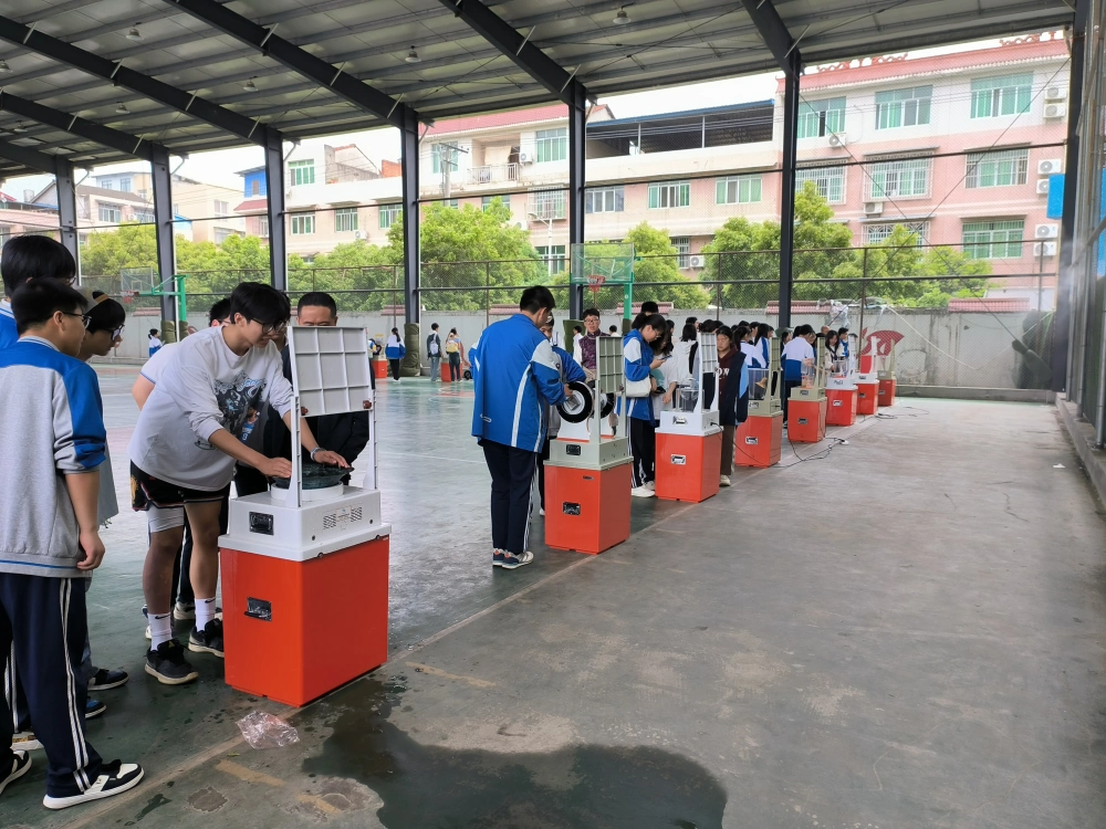 活动现场,满载18件互动科普展品的“科普大篷车”成为焦点。展品涵盖物理、数学等领域,如“益智游戏”“辉光球”“窥视无穷”等装置吸引学生驻足体验。学生们通过动手操作、观察现象、记录数据,直观理解科学原理,感受科技魅力。