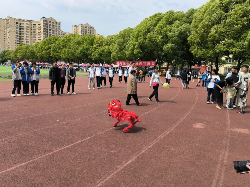 活动的高潮环节是炫酷的无人机编队表演和智能机器人“狮子狗”互动秀。20架无人机以天空为幕,通过动态灯光变换组合出“水母”“五角星”等队形。而仿生机器人“狮子狗”则展示了跳跃、握手、语音交互等动作,其灵活的仿生设计与人工智能技术引发阵阵欢呼。学生们兴奋地说:“机器人‘小狗’不仅能跳舞,还能语音交互,真是科技带来无限可能。