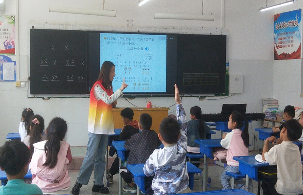 在音乐课堂上,海倩倩老师的基本功扎实,课堂氛围轻松愉快,孩子们的积极性很高,热情互动,每个孩子脸上都洋溢着笑容!海老师用琴声问好的方式开启课堂,形式独特,能迅速吸引学生注意力,营造出轻松愉悦的音乐课堂氛围 ,激发学生的学习兴趣。节奏教学循序渐进:从简单的节奏型填词练习,如“×你”“×好”等,逐步过渡到复杂些的节奏组合,符合学生对节奏知识由浅入深的认知规律,有助于学生扎实掌握节奏概念。音乐感知培养:通过聆听《大鼓和小鼓》,引导学生思考歌曲内容以及与之前所学节奏的关联,能有效培养学生的音乐感知能力和知识迁移能力。