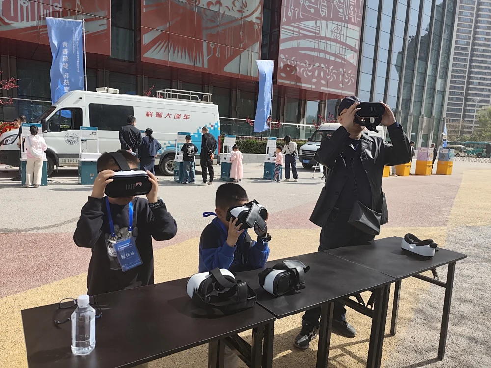 活动现场,物理、化学、生物、天文等多个学科领域的科普展品琳琅满目。神奇的光学现象、奇妙的力学原理、趣味十足的生命科学等展品,以及活泼灵动的机器狗、动感十足的机器人等互动展示,以直观且互动体验的方式,将原本晦涩难懂的科学知识生动呈现。在科普大篷车周围,学生们纷纷围聚在展品前,亲手操作体验。随着按钮按下,机械装置开始运转,光影流转、能量转换间,孩子们的眼中满是好奇与兴奋,现场惊叹声与欢笑声此起彼伏。