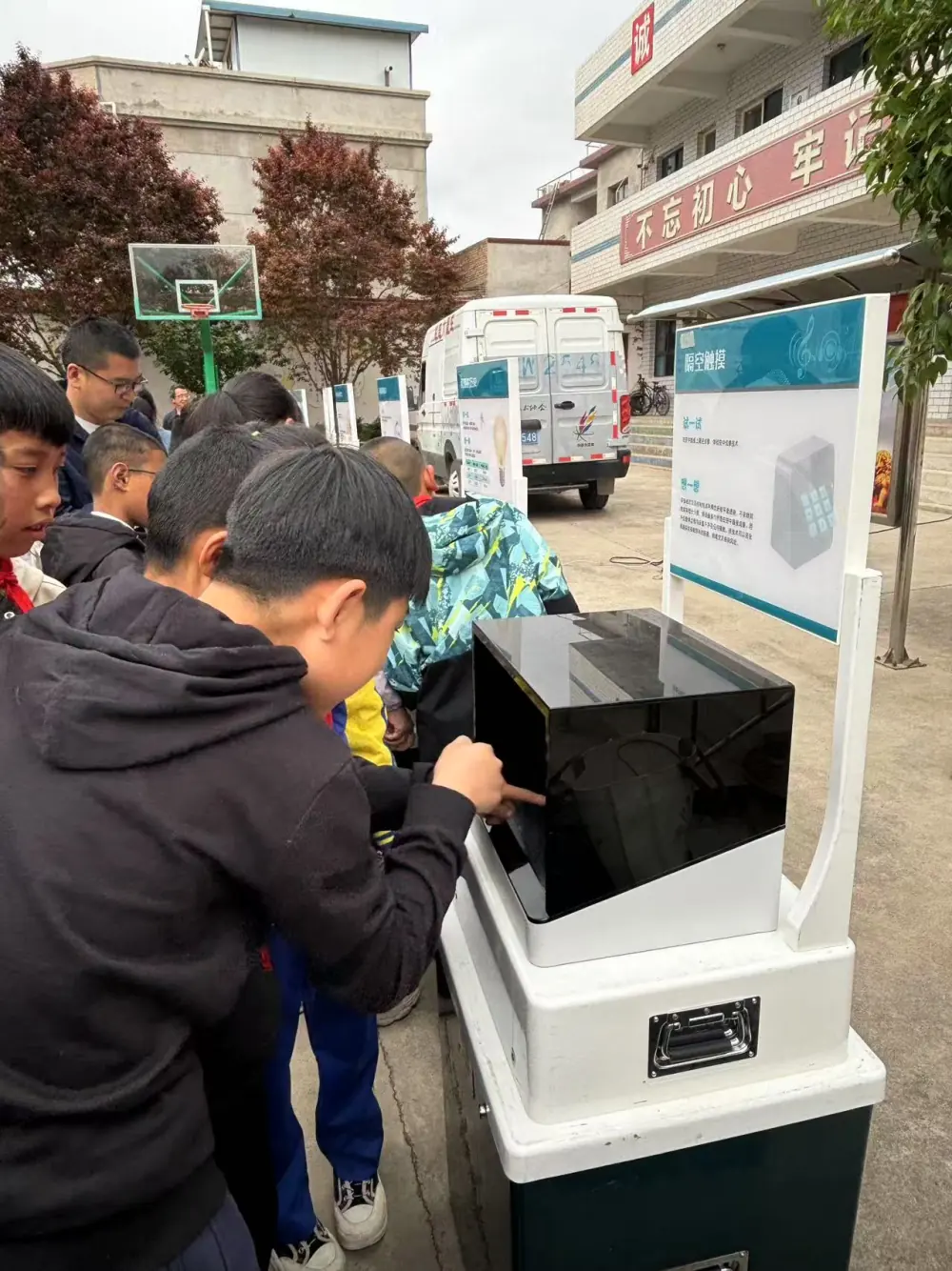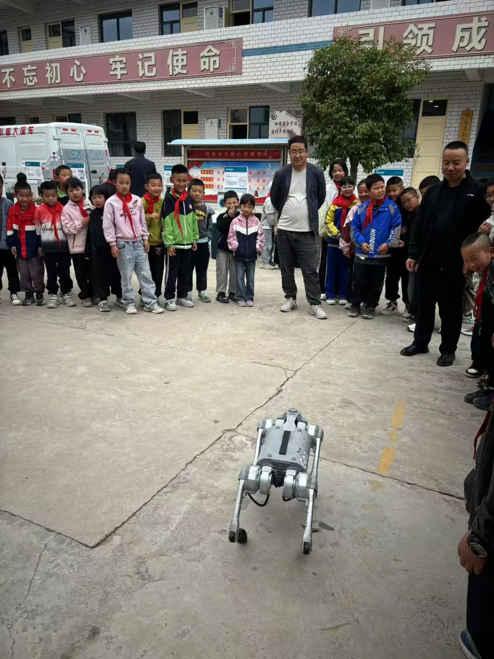 活动现场还设置了科普展品展示区,展示了包括力学、光学、电磁学等方面的科普展品。同学们亲自动手操作了这些展品,观察奇妙的科学现象,如“隔空触摸”“骨传导耳机”等,在实践中感受科学的魅力和奥秘。讲解了实验原理,引导同学们思考科学知识在生活中的应用,使抽象的科学知识变得生动有趣、易于理解。特别是机器狗,为大家进行了一场又一场的表演,每个表演动作非常逼真、生动形象、栩栩如生,掌声、呐喊声高潮迭起,激发了现场师生的科学激情和好奇心理,机器狗的表演将整个活动推向了高潮。