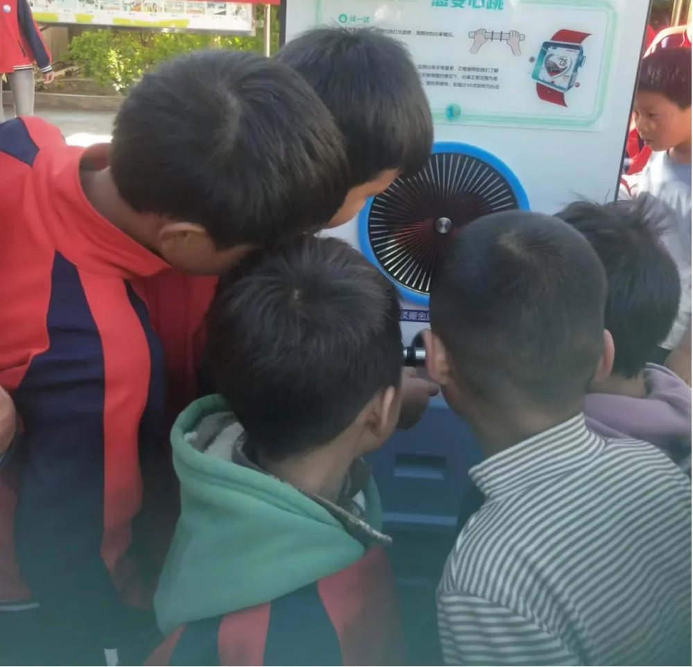 活动现场,科普大篷车载满了各类新奇有趣的科普展品,涵盖了物理、化学、生物等多个领域,科普志愿者们将其一一整齐排列。从神奇的光学原理到奇妙的力学现象,从电磁的奥秘到数学的趣题,每一件展品都以直观、生动的方式展示着科学知识,吸引了众多学生的目光。同学们围在展品前,在志愿者们的指导下,好奇地观察、操作,不时发出阵阵惊叹,在动手实践中感受科学的魅力,探索科学的奥秘。