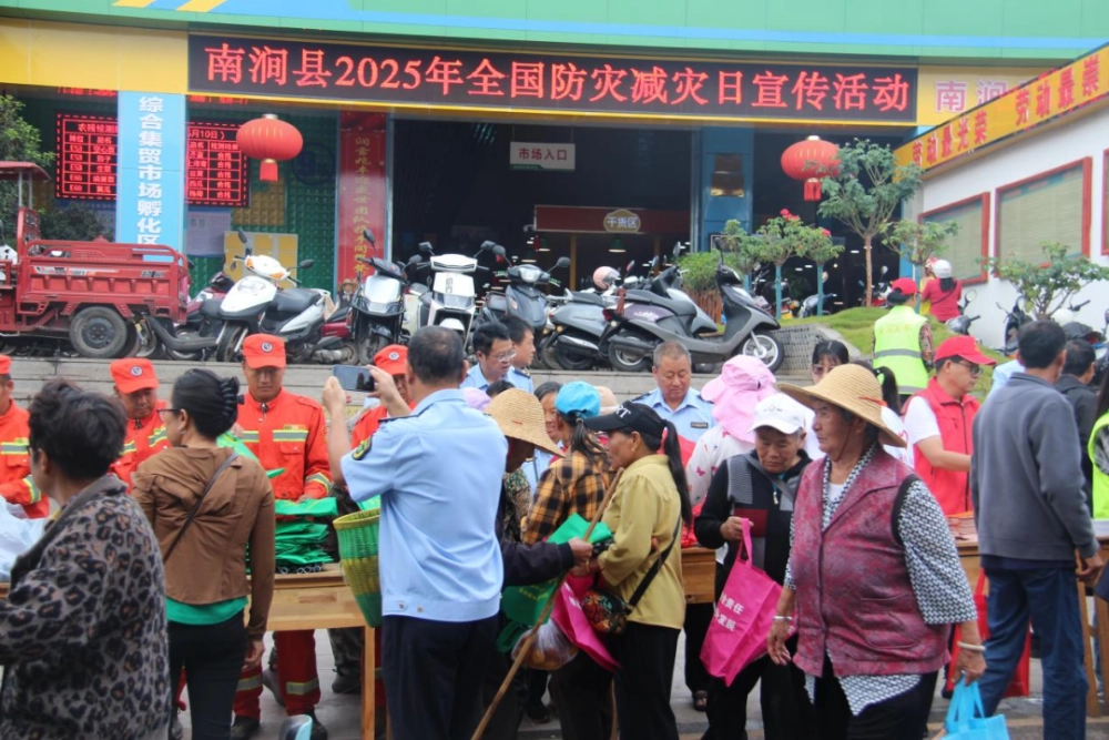 5月11日上午,南涧县组织县应急、地震、自然资源、水务、农业农村、林草局、气象、红十字会、科协、消防救援局等部门,在县城第二集贸市场开展2025年全国防灾减灾日宣传活动。