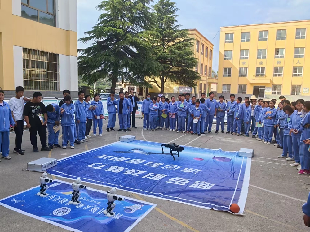 活动在学校操场拉开帷幕,现场摆放了琳琅满目的科普展品,涵盖了力学、光学、电磁学、声学等多个领域。这些展品造型独特、设计精巧,吸引了众多学生的目光。在科普志愿者的引导下,学生们有序地参观体验,亲手操作展品,感受科学的神奇魅力。一幅幅精美的3D展板,展示了天文地理、生物多样性等内容;机器狗和机器人舞蹈秀等环节,以震撼的视听效果点燃学生热情,同步开展科普知识问答,深化科学认知。