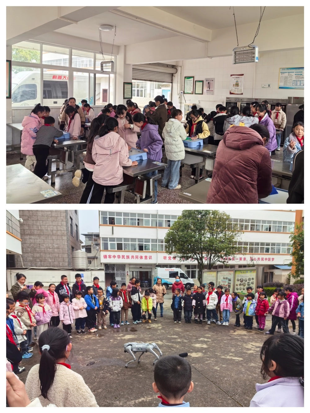 此外,“机器狗”的出现将现场活动氛围推向了高潮,灵活多变的机器狗一会儿空翻,一会儿跳舞,还和现场的同学们比心作揖,引得全场雀跃、欢呼雷动,在整个活动中,同学们认真聆听,兴致盎然,纷纷表示将不断学习科学知识,争做有志、有识、有为的新时代好少年,为科技强国贡献自己的力量!
