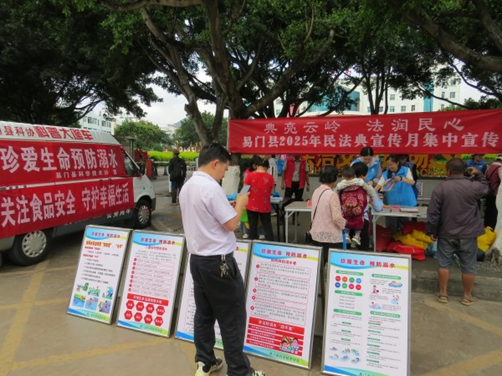 5月15日,易门县科协联合司法局、民政局等多家单位在龙泉街道广场开展 “民法典宣传月” 系列主题活动。县科协结合单位实际,精心策划、多措并举,将民法典普及与保密法宣传、防溺水安全教育有机结合,开展了一系列形式多样、内容丰富的主题活动,为群众送上了一场法治与安全知识的 “盛宴”。