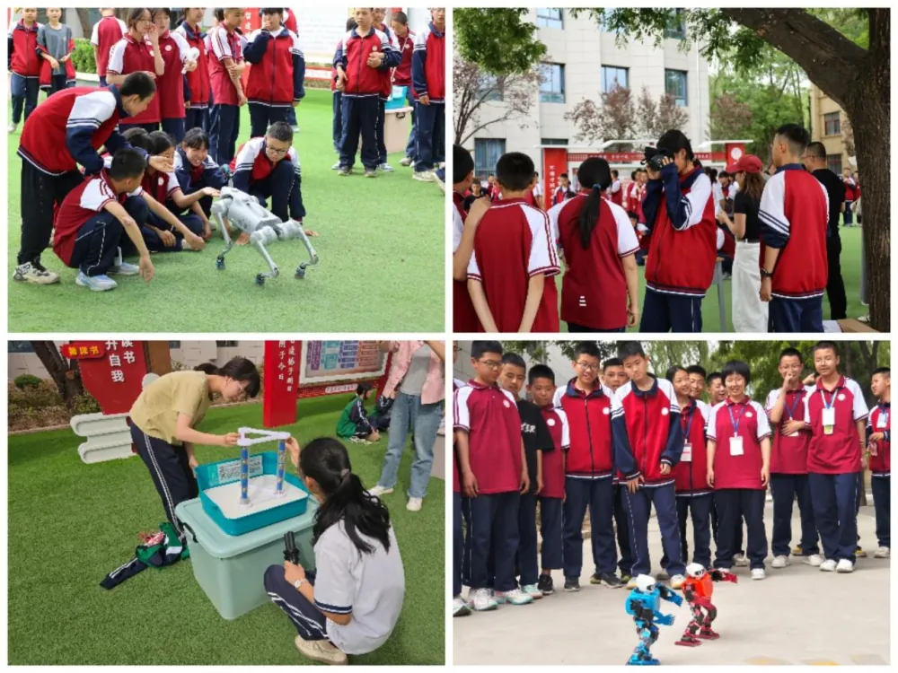 在教学楼前的展区,科普大篷车带来的各种互动展品同样吸引了大批同学。会跳舞的机器人、灵活的机器狗“笨笨”、沉浸式VR体验等设备前都排起了长队。同学们一边操作体验,一边讨论其中蕴含的科学原理,将抽象的知识转化为具体的认知。