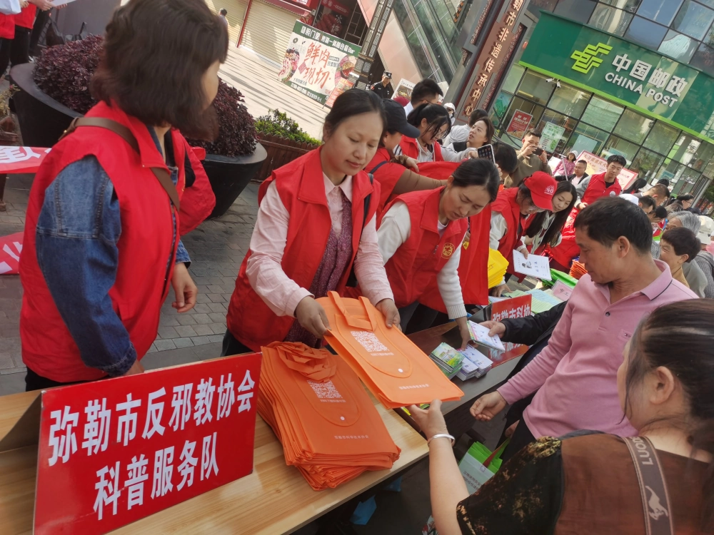 在第十个“全民国家安全教育日”到来之际,4月15日弥勒市科协联合多部门在弥阳街道文昌街广场开展科普大篷车“五进”科普志愿服务活动暨“全民国家安全教育日”宣传活动。