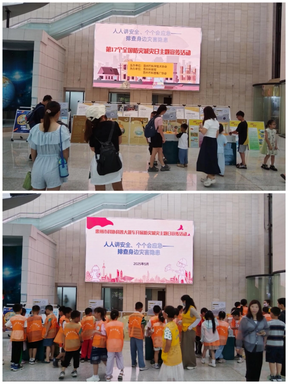 5月17、18日,惠州市科协科普大篷车联合惠州科技馆、惠州市科普推广协会,在惠州科技馆开展“人人讲安全、个个会应急——排查身边灾害隐患”为主题的防灾减灾宣传活动。