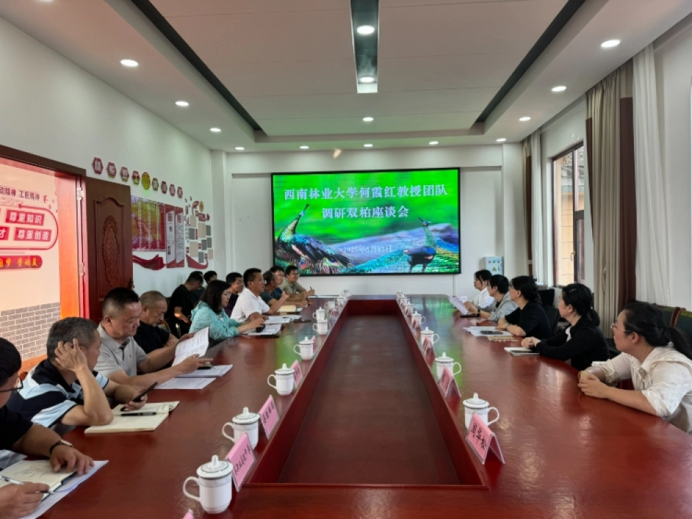 调研组先后深入双柏县国有林场妥甸森林管护所老熊箐林下中药材种植基地、爱尼山乡海资底社区苹果山千亩林下种植中药材基地、双柏县职业高级中学、云南泰华丰功药业有限公司进行现场调研,并召开调研座谈会。座谈会上,双柏县汇报了全县中彝医药(茯苓)产业发展情况和请求西南林业大学帮扶事项,与会人员围绕农民院士科技服务站建设、人才培育、校县合作等方面开展交流探讨。