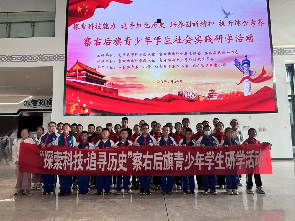 5月24日,由乌兰察布市科学技术馆、察右后旗科学技术协会、察右后旗新华书店主办,察右后旗科学技术馆、察右后旗青少年科技教育学会承办的青少年学生社会实践研学活动成功举办。来自察右后旗的40多名小学师生以“探索科技魅力,追寻红色历史,培养创新精神,提升综合素质”为主题,开启了一场跨领域、多维度的深度学习之旅。
