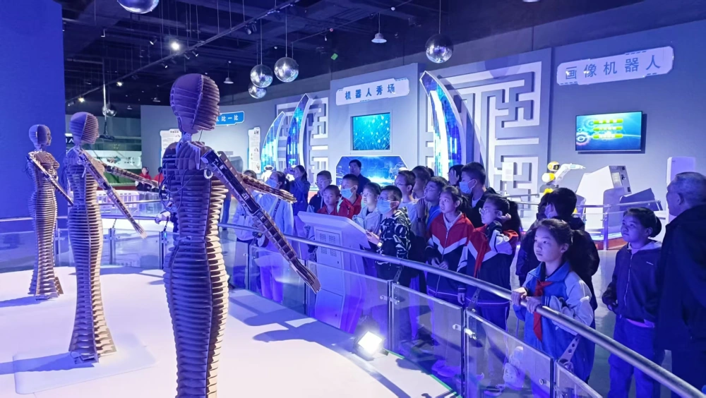 在乌兰察布科学技术馆,智能空间展区成为师生探索未来科技的“第一站”。互动式机器人、虚拟现实设备等前沿科技展品,让学生们直观感受人工智能、大数据等技术的魅力;在中国古代发明展区,活字印刷、浑天仪等复原装置,以实物模型与多媒体展示相结合的方式,带领师生回溯中华文明的科技智慧。此外,场馆精心准备的科普展览剧以生动剧情和现场互动,将科学知识融入趣味表演,为学生们带来沉浸式的学习体验。
