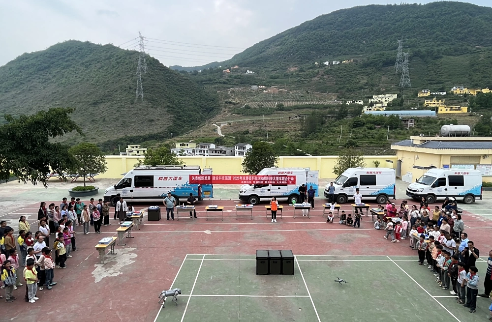 5月13日鲁甸县、永善县、彝良县、大关县科协在永兴街道明子村开展了科普大篷车活动。本次活动科普展品丰富多彩,机器人、机械狗表演让人过目不忘,除此之外宣传品也琳琅满目,科普知识以草稿本、作业本、碳素笔、围裙、环保袋等实用性工具为大家呈现。活动后,大家还实地参观了科普小镇、云南省科普示范基地(永善县富祥专业合作社),实地体验永善县的自然风光和人文知识。