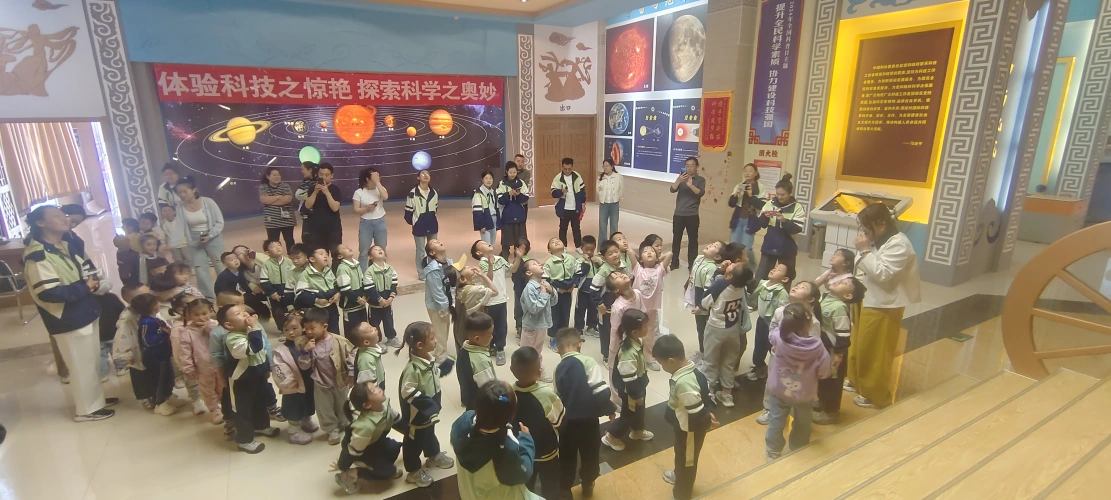 活动现场,在科技馆讲解员的引导下,师生们有序参观了科技馆内多个特色展区。在基础科学展区,孩子们通过互动展品直观感受物理、数学等学科的奇妙之处;航天科技知识展区中,航天器模型与图文并茂的讲解,让孩子们仿佛置身浩瀚宇宙,感受我国航天事业的伟大成就;火山体验展区利用模拟场景,生动展现了火山喷发的原理与自然奇观;人体揭秘展区则以趣味化的方式,带领孩子们认识人体构造,探索生命科学的奥秘 。