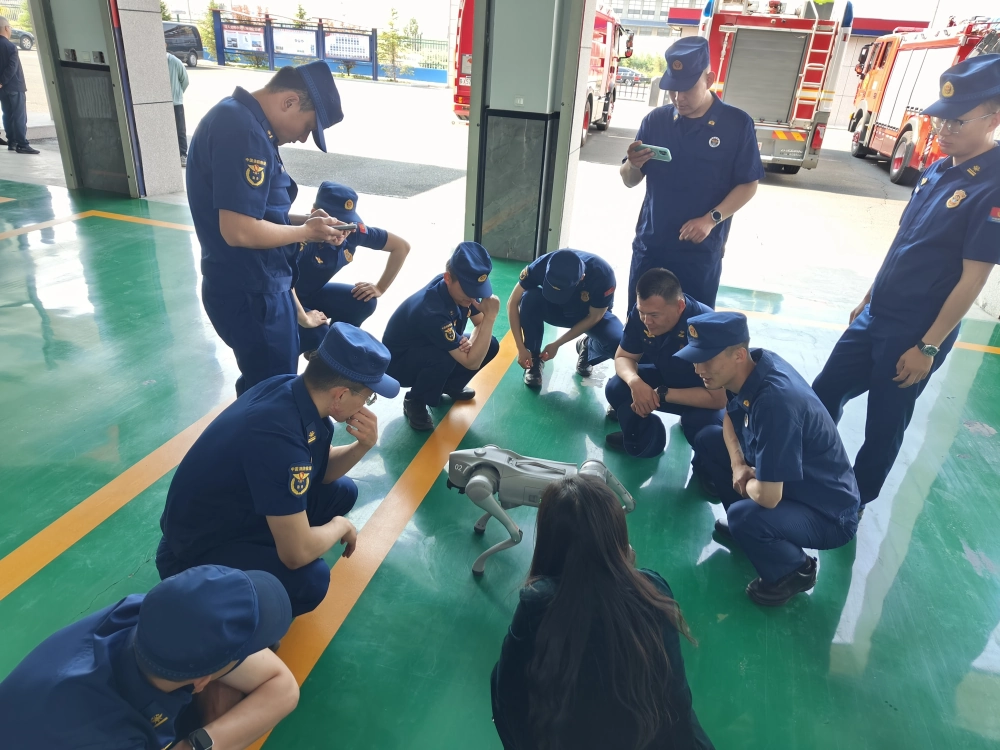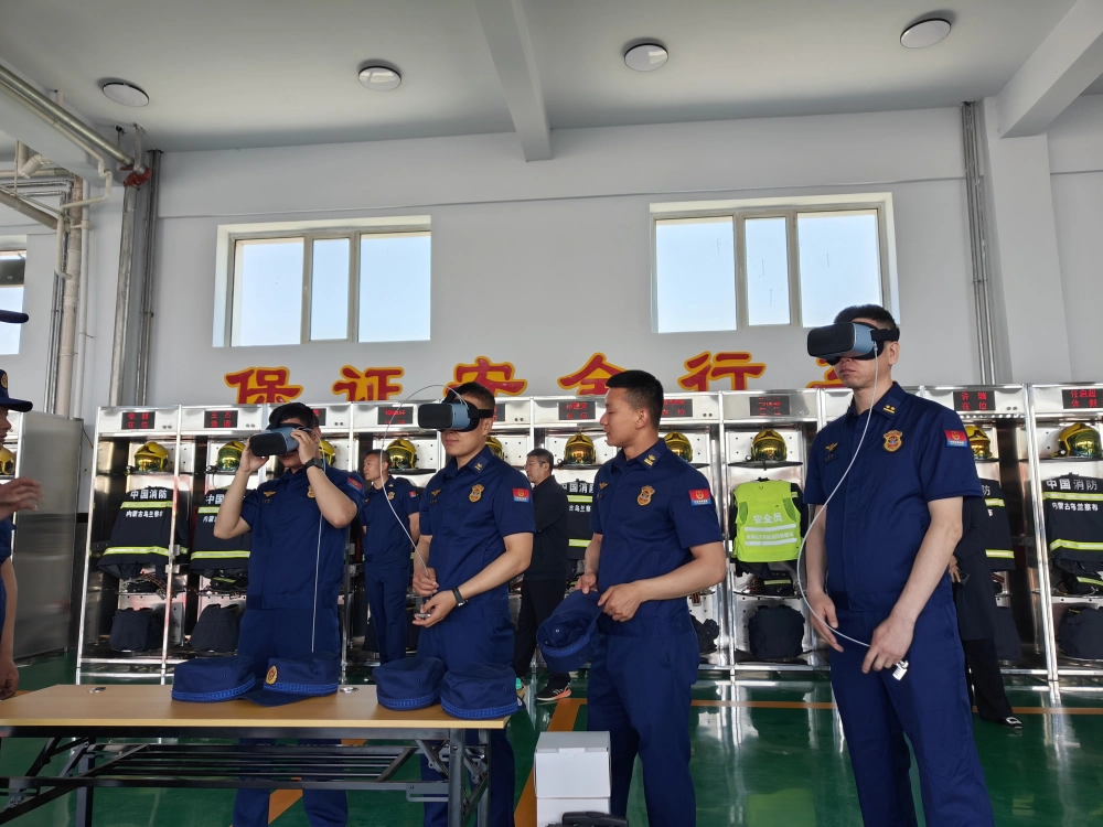 活动现场热闹非凡,科技元素率先点燃热情。机器狗灵活地穿梭、翻滚,跳舞机器人随着音乐节奏精准舞动,引得众人纷纷驻足围观互动、拍照记录;VR眼镜体验区同样热闹非凡,消防员们戴上设备,沉浸式感受奇妙的科技世界,或是探索浩瀚宇宙,或是穿梭动物世界,新奇的体验让大家兴致盎然。