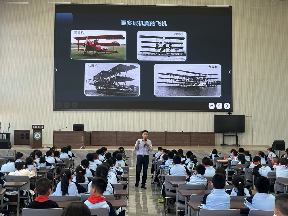 本次科普活动邀请了中科院老科学家科普演讲团的崔凯教授,为县四小200余名师生带来了飞行器科普讲座。同时,科技志愿者、科普信息员依托科普大篷车,为现场青少年播放了2025年全国科技活动周和全国科技工作者日宣传片,发放了免费科普读物。