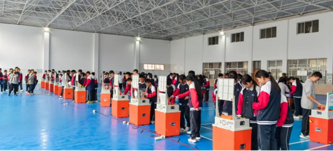 科技设备展示区热闹非凡。科普大篷车的科普展具涵盖了力学、光学、电学等多个学科领域。同学们沉浸其中,神奇的光学现象、奇妙的电磁感应实验让他们目不暇接。通过互动参与,同学们体验科学原理,感受科学的奇妙之处,在轻松愉快的氛围中收获了科学知识。