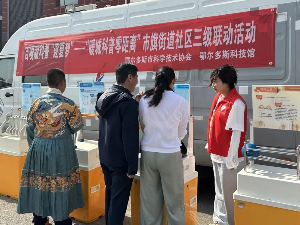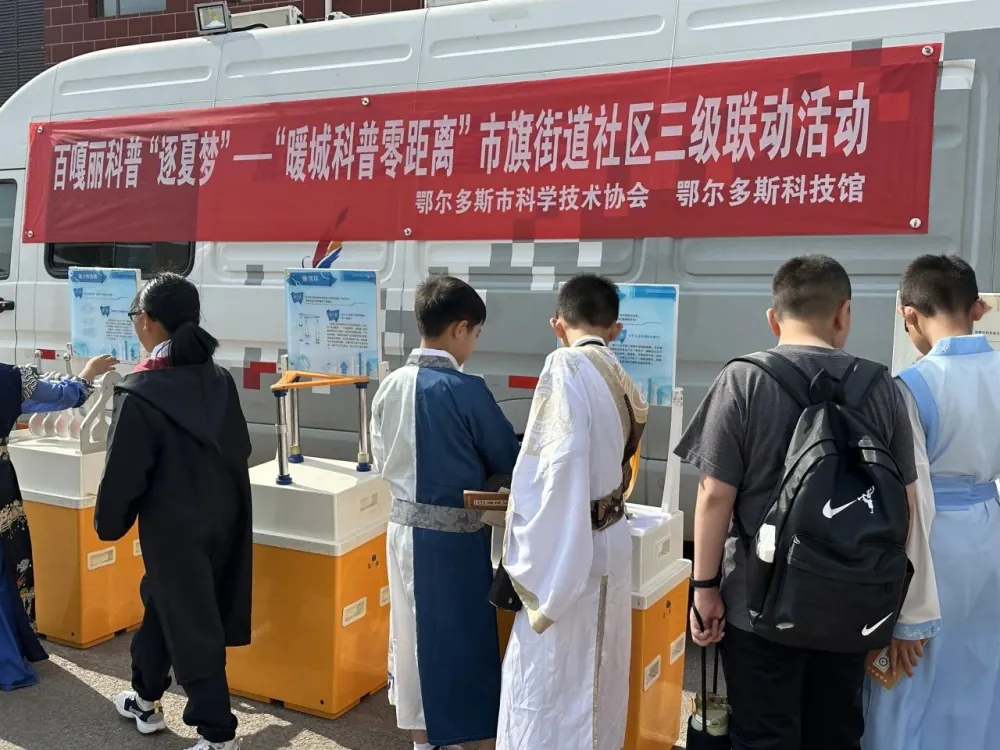 为深入贯彻落实《全民科学素质行动规划纲要(2021—2035)》,不断推动科普资源均衡化、普惠化发展,5月29日,鄂尔多斯市科技馆科普大篷车动驶入伊金霍洛旗第三小学。此次活动面向600余名在校师生开展,通过沉浸式展品体验、互动式科学启蒙,把科学知识送到学生身边,把科学精神播撒进孩子们的心田,点燃了校园里的科技火种。