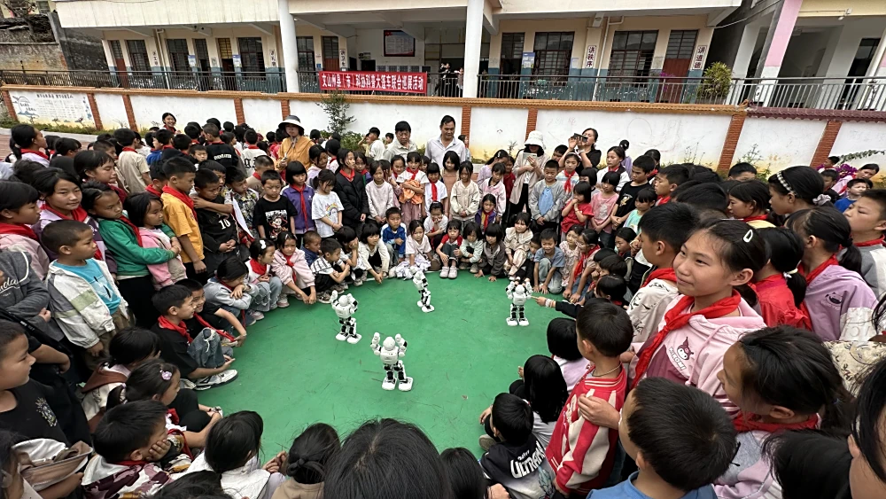 引人入胜的智能科技。科技表演区热闹非凡,机器狗灵活的后空翻引发阵阵尖叫。机器人队伍整齐划一的舞姿引发欢呼浪潮。戴着VR眼镜的孩子们,时而穿梭在“快乐星球”的奇幻场景,时而体验过山车的惊险刺激,在欢呼声、尖叫声中感受科技的魅力。