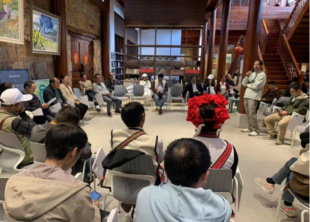 最后,科技工作者到法雨哨海男书院开展交流座谈,从党建引领、资源共建共享、深挖农业资源潜力、提升农业产业附加价值、实现农业农村现代化的创新途径为农文旅融合发展提供技术支持和创新动力积极进行了交流发言,为农技协助力农文旅融合发展交流提出了意见建议。