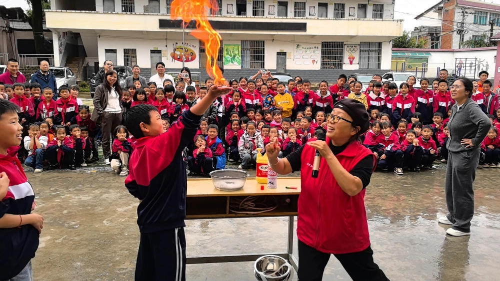 活动现场,师宗县科协志愿者化身“科学引路人”,以生动实验解锁科学奥秘。火焰在手掌中跳跃,点燃学生好奇心,大家簇拥在实验台旁,目不转睛捕捉每个细节,在惊叹声中叩响科学之门。