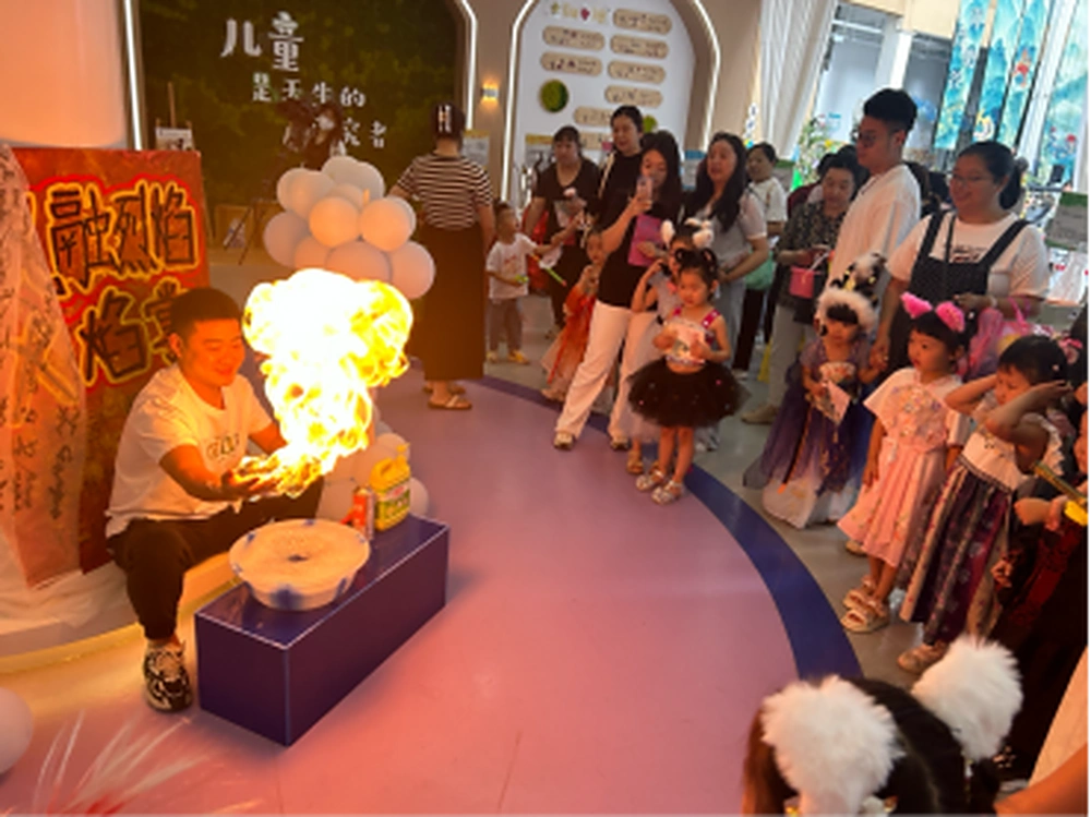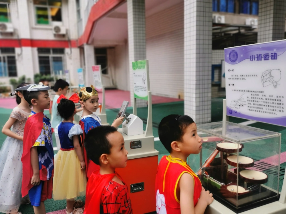 科普大篷车带来的科技互动展具引人注目,孩子们通过亲手操作,直观了解光学、力学等科学知识,一双双好奇的眼睛里闪烁着求知的光芒。 “哇!老师的手上有火焰!”伴随着孩子们的阵阵惊呼,“火焰掌”实验瞬间点燃全场热情。在专业人员的指导下,小朋友们近距离观察了这一神奇现象,探索燃烧与安全的科学原理。