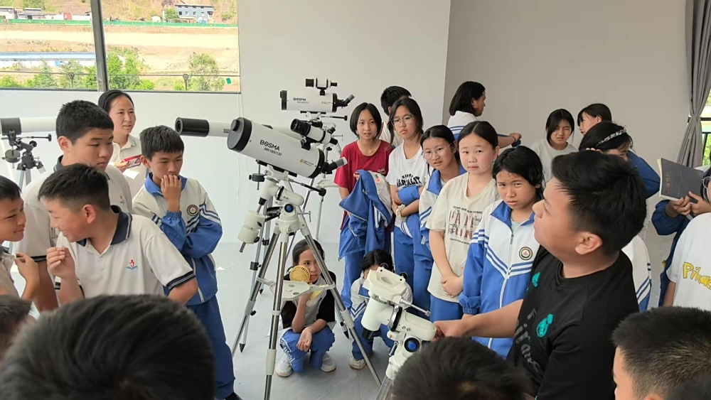 2025年5月21日,漾濞县科协大篷车满载着知识与希望,驶入校园,为科普启航班的同学们带来了一场别开生面的天文望远镜组装与实操课程。此次活动由漾濞县科协精心策划组织,旨在激发青少年对天文科学的浓厚兴趣,提升他们的实践操作能力与科学素养,让科学的种子在校园里生根发芽。活动伊始,专业的科普志愿者们以生动形象的方式,向同学们介绍了天文望远镜的基本原理、构造以及在天文学研究中的重要作用。复杂的天文知识在志愿者深入浅出的讲解下,变得通俗易懂,同学们听得津津有味,眼中满是对未知宇宙的好奇与向往。