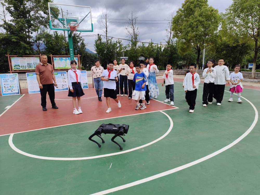 超萌机器狗的亮相,更是将现场气氛推向了高潮。机器狗灵动的身姿、智能的互动,让孩子们近距离感受到了人工智能的魅力。大家纷纷围拢过来,动手操作体验,与机器狗亲密互动,一双双眼睛里闪烁着对科学的向往与热爱。