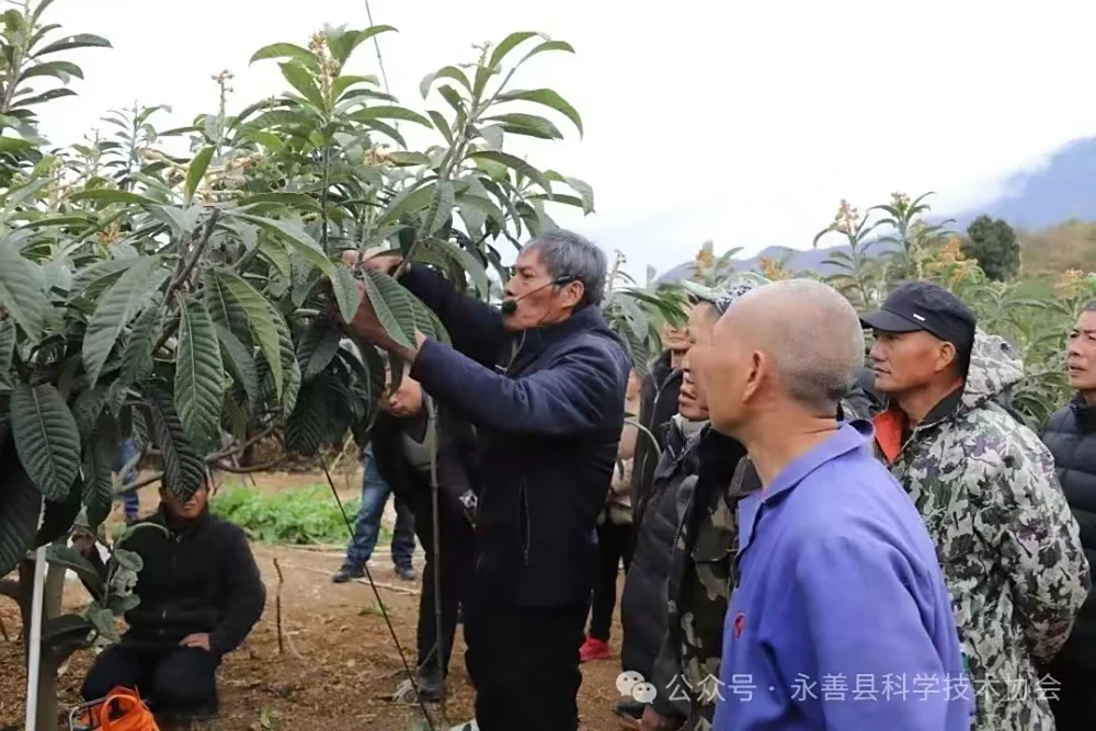 云南省永善县科协在务基镇务基社区开展枇杷疏花疏果培训
