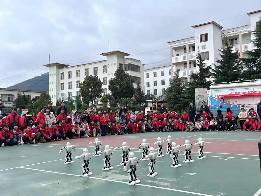 机器人表演成为“团宠”。随着动感的音乐响起,原本静静伫立的机器人瞬间“活”了起来。它们灵活地扭动身躯,做出各种高难度的舞蹈动作,整齐划一且充满节奏感。孩子们都被机器人的精彩表演深深吸引,生怕错过任何一个精彩瞬间,现场充满欢声笑语。