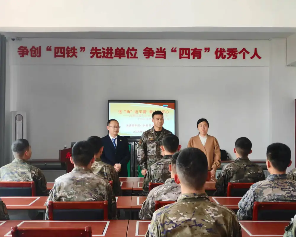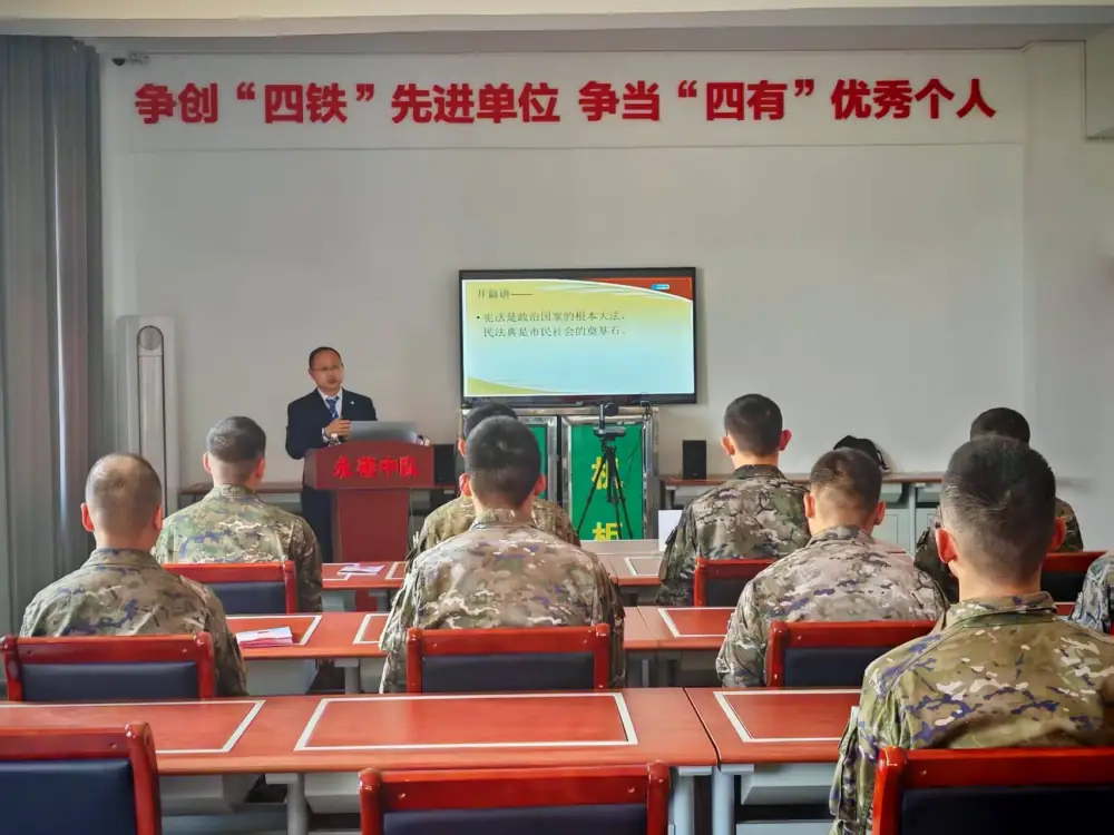 为深入推进普法宣传工作走深走实,增强部队官兵法治意识,4月8日,永善县科协联合县司法局走进武警昭通支队执勤二大队永善中队,开展民法典专题普法活动,通过案例解读、互动答疑等形式,为武警提供精准法律服务,拓宽部队官兵法律知识面。