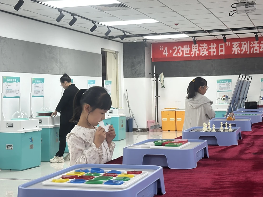 活动现场,20件涵盖物理、化学、生物等领域的科普教具整齐陈列,“磁力传动摆”“窥视无穷”“人体发声”等展品前围满体验者。同时展出11块科普展板,读者们亲手操作展品装置,直观观察科学现象,不少家长带着孩子边玩边讨论:“这种‘动手学原理’的方式比看书更生动,孩子一下就记住了!”