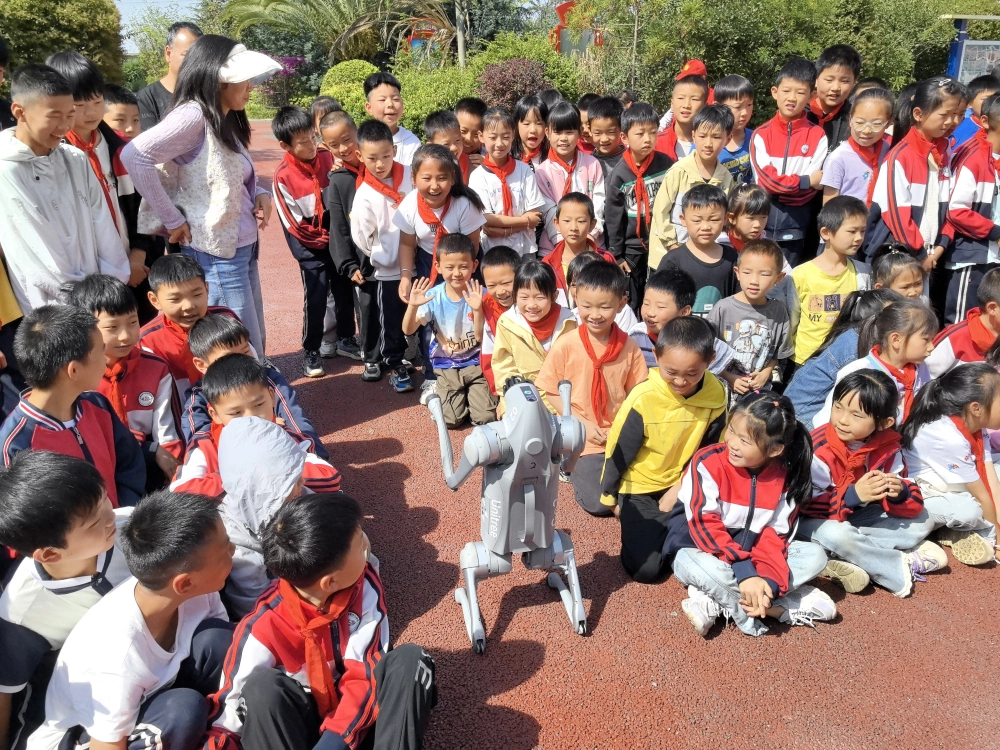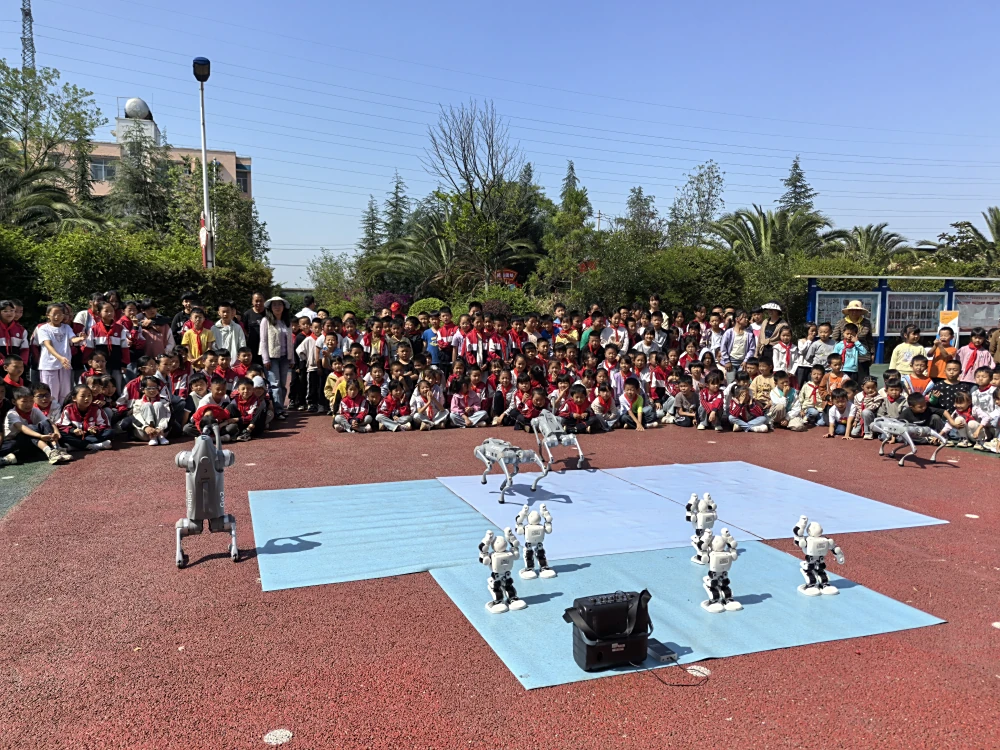 随后,精彩绝伦的科学表演活动将现场气氛推向高潮。机器狗灵动的身姿吸引了全场目光,它时而灵巧跳跃,时而优雅转圈,精准地完成各种高难度动作,展现出人工智能的魅力,引得学生们阵阵惊叹与欢呼。科学实验秀更是让学生们近距离领略了科学的神奇。火焰掌瞬间燃起的火焰,在表演者手中跳动却不伤人;气体喷发时强大的力量震撼人心;互动取球环节,学生们踊跃参与,在实践中感受科学原理;空气大力士实验,让大家直观地认识到空气蕴含的巨大能量。每一个实验都充满趣味与惊喜,学生们积极互动,现场氛围热烈非凡。
