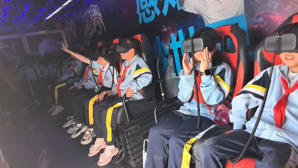 最受欢迎的当属VR大篷车体验区。先进的VR设备为同学们打开了一扇通往虚拟世界的大门,沉浸式的体验让他们仿佛置身于宇宙星空、深海海底等奇妙场景之中。在虚拟与现实的交织中,同学们尽情感受科技的神奇,开启了一场充满惊喜与挑战的科技之旅。