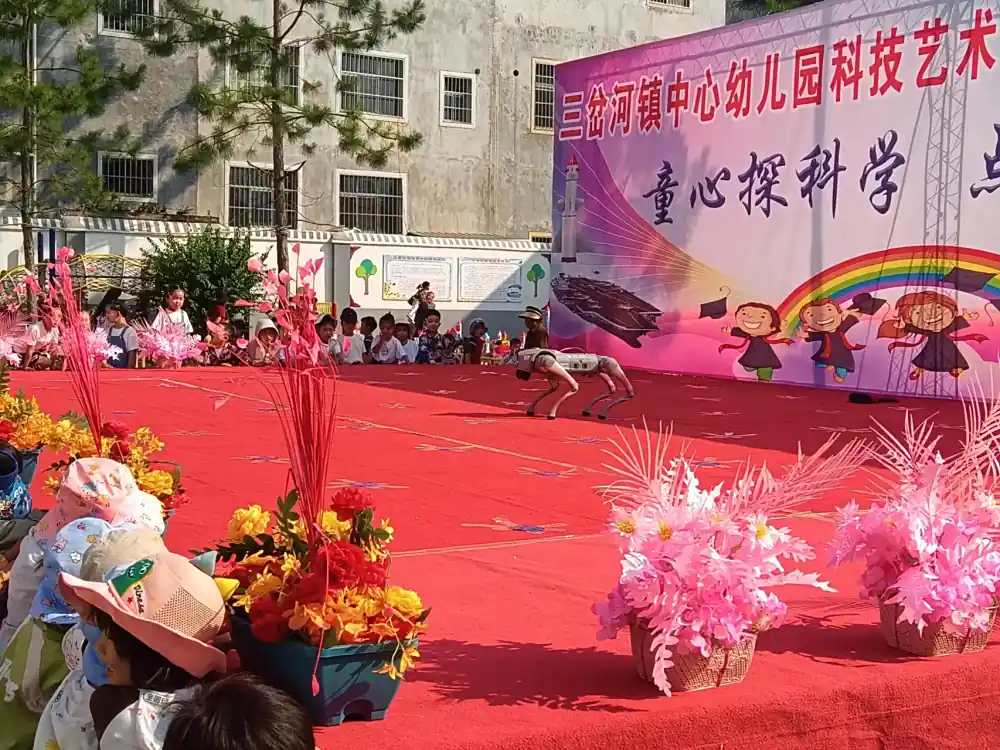 活动现场,科普志愿者们针对幼儿的认知特点,用生动形象、充满童趣的方式讲解科学知识。在“光与影”的讲解环节,志愿者先以一场手影游戏开场,小兔子、小狗、老鹰等动物形状的手影在墙上跳动,瞬间抓住了孩子们的目光。随后,可爱的机器狗闪亮登场,它整齐划一地表演着舞蹈,时而旋转,时而跳跃,憨态可掬的模样瞬间拉近了科技与小朋友的距离,现场气氛热烈非凡。