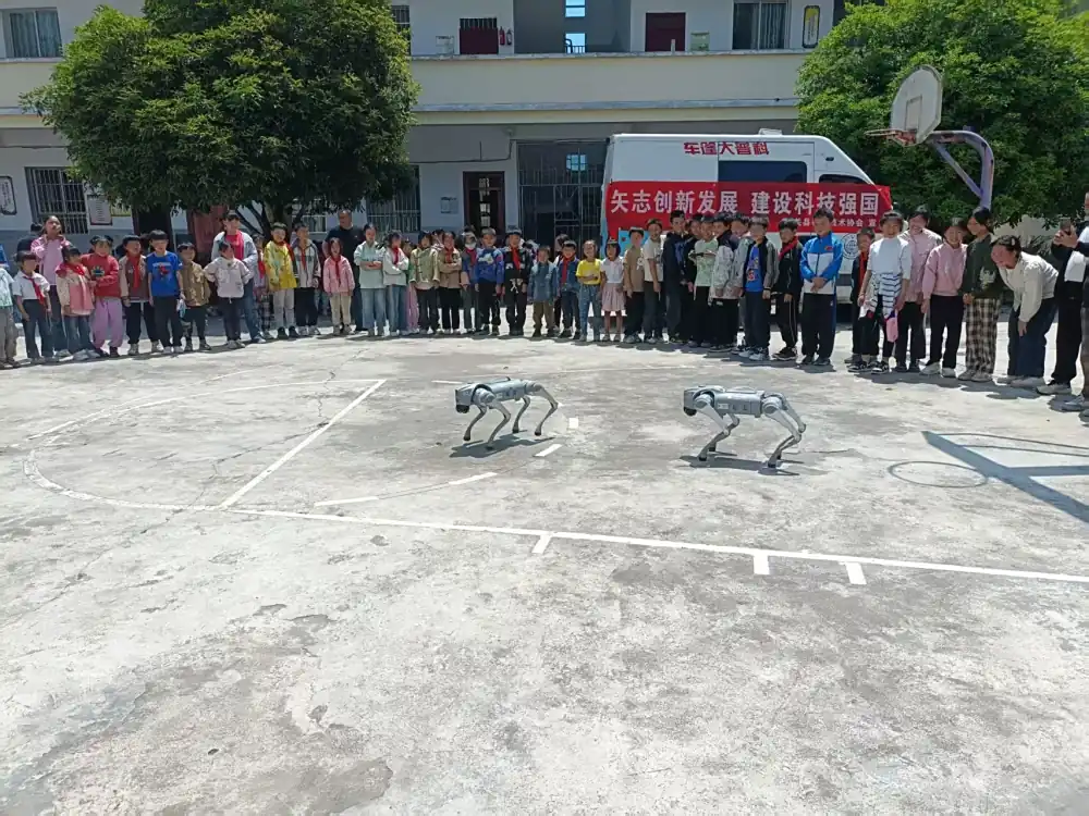 活动现场,两个四足机器人时而跳跃、时而翻滚、时而舞蹈吸引了众多学生驻足围观。在科普志愿者的指导下,学生们亲手操作展品,感受科学的魅力。“原来通过按键控制‘机器狗’就能做各式各样的动作,真是太神奇了!”五年级的李同学一边操作按键一边兴奋地说。此次科普大篷车巡展不仅让学生们近距离接触到了前沿科技,还通过动手实践,培养了他们的观察能力和创新思维。