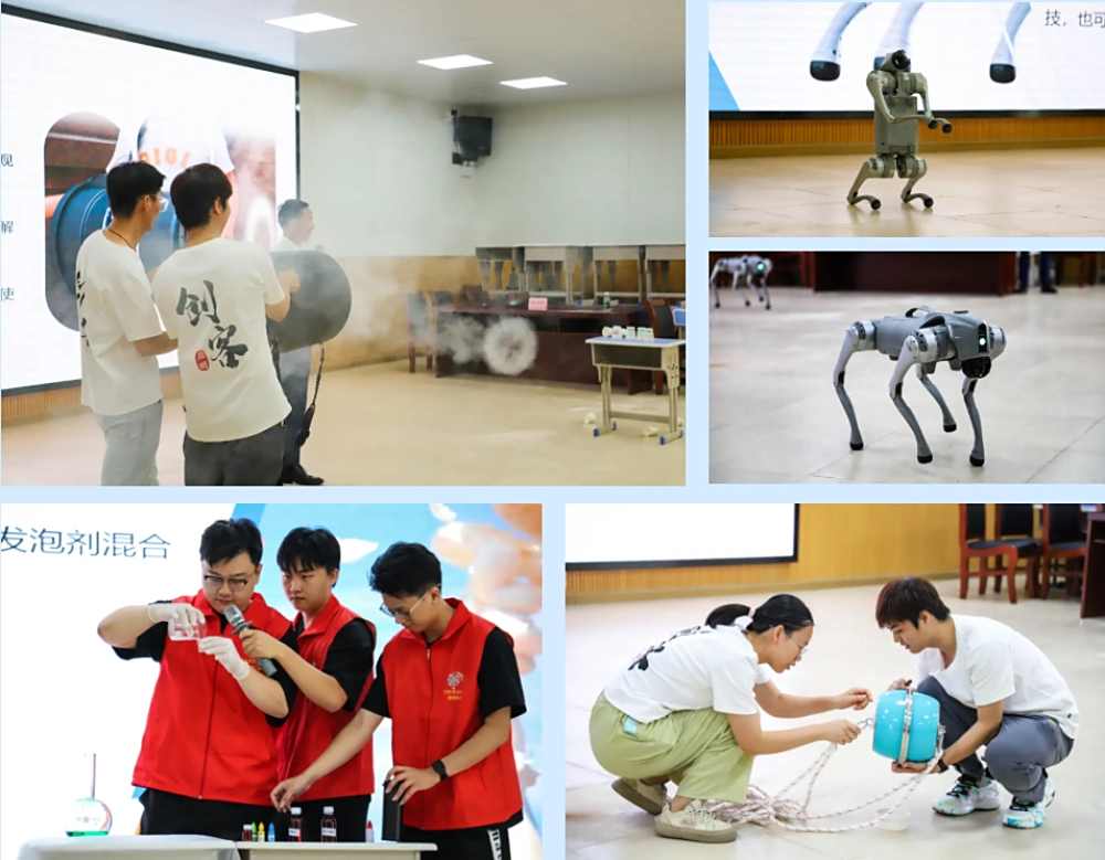 科学实验表演环节,成为孩子们欢乐的科学探索课堂。机器狗灵动登场,在工作人员的操控下,做出各种有趣动作;“大象牙膏”实验中,大量泡沫迅速喷发;马德堡半球实验时,孩子们亲身感受大气压强的神奇力量;超级空气炮发射出的气环更是让现场气氛沸腾……