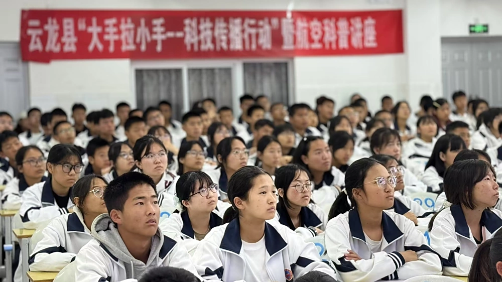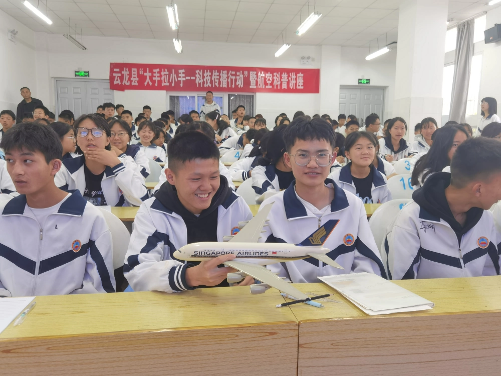 为深化科普示范社区建设,赋能青少年科学素养提升,6月19日上午,云龙县科协联合漕涧镇早竹社区走进云龙县第二中学,成功举办“大手拉小手——科技传播行动”暨航空科普专题讲座。134名师生参与了讲座。