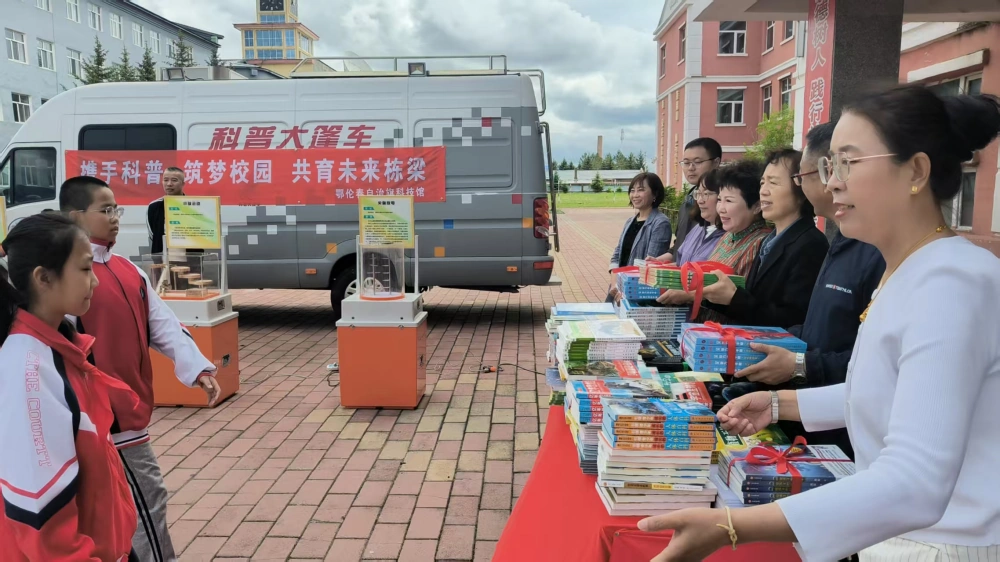 活动伊始,一场充满书香与知识力量的捐赠仪式拉开帷幕。鄂伦春旗科协向克一河小学捐赠了 300 册科普书籍,这些书籍内容丰富多样,涵盖天文地理、生物科学、物理化学等多个领域,无论是低年级充满趣味的绘本故事,还是适合高年级深入探究的科普读物,都能满足不同年龄段同学对科学知识的渴求,为孩子们打开一扇扇探索科学世界的窗户。