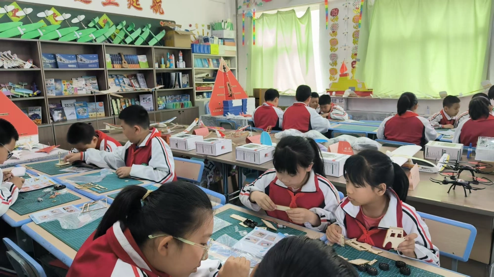 在放飞梦想活动室里,一场别开生面的科学小实验手工制作活动正如火如荼地进行着。同学们兴致勃勃地参与其中,在科技志愿者的指导下,亲手完成一个个奇妙的科学小实验和手工作品。看着自己的成果,孩子们脸上洋溢着自豪与喜悦的笑容,他们不仅锻炼了动手能力,更在实践中收获了知识,激发了对科学探索的浓厚兴趣。与此同时,科协领导和学校领导在活动室内深入交流。双方围绕科普进校园活动的开展情况进行了充分讨论,分享经验与心得,并对下一步的馆校合作进行了更深入、更全面的探讨。双方一致表示,将继续加强合作,整合资源,开展更多丰富多彩的科普活动,为孩子们搭建更广阔的科学探索平台,助力培养更多未来栋梁。