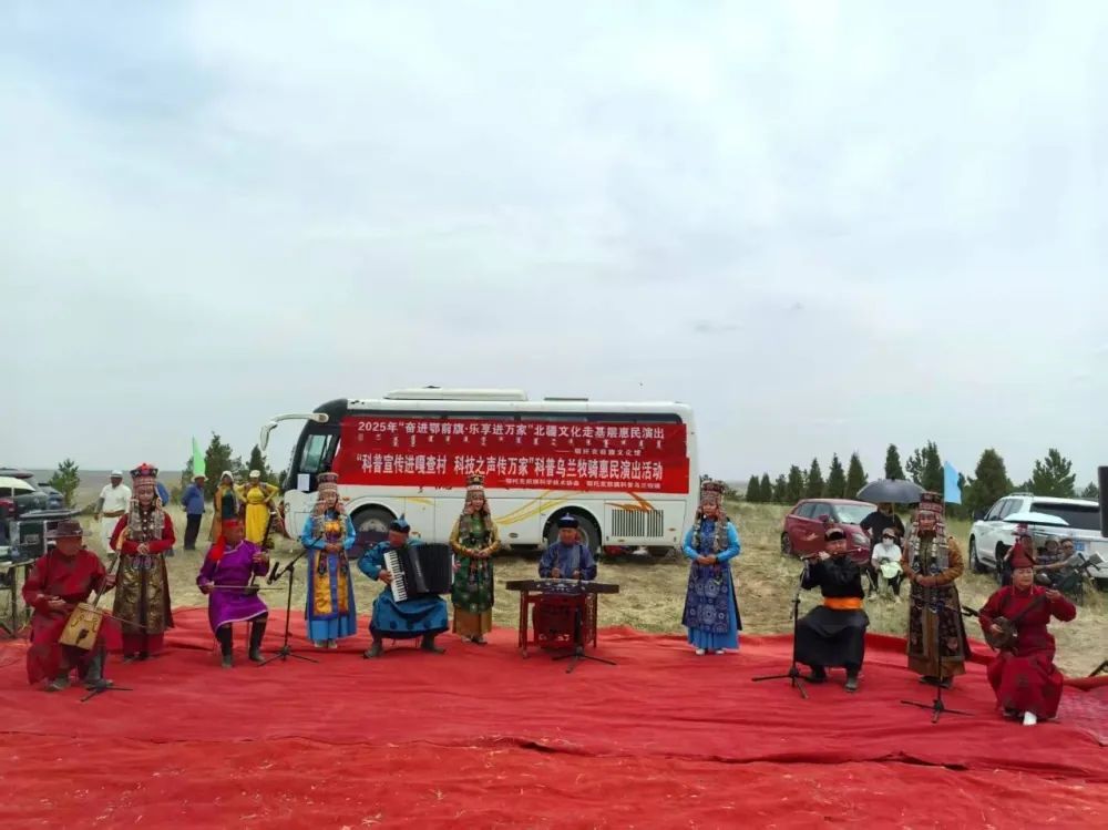 6月18日,鄂托克前旗科普乌兰牧骑志愿服务队走进昂素巴彦希里嘎查,开展“科普宣传进嘎查村、科技之声传万家”惠民志愿宣传活动。这场活动以文艺为桥梁,将科普知识融入极具地域特色的文艺表演中,为当地农牧民带来了一场别开生面的科普文化之旅。
